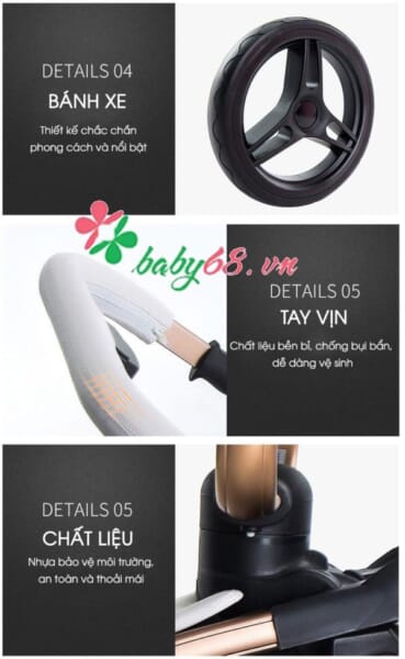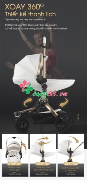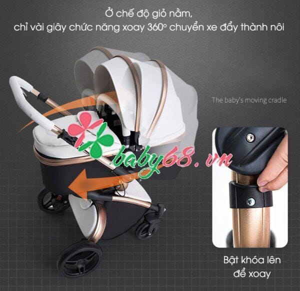 Xe đẩy với chức năng xoay 360 có thể dễ dàng nhận ra việc đảo chiều ghế hoặc nôi. bạn có thể tận hưởng khả năng vận động, linh hoạt và có cơ hội khám phá thế giới cùng bé. Tán cây dày hơn và ổn định hơn để bảo vệ bức xạ và chống lạnh tốt hơn vào mùa đông để ngăn gió và tuyết. Thiết kế xe đẩy khung tam giác, hệ thống treo nhiều bánh ổn định bốn bánh giúp bé cảm thấy an toàn hơn.