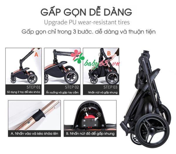Xe đẩy du lịch trẻ em 3 trong 1 Xe đẩy có thể gấp lại với chức năng xoay 360 với khung nhẹ có thể điều chỉnh ghế ngồi cộng với ghế ngồi ô tô.