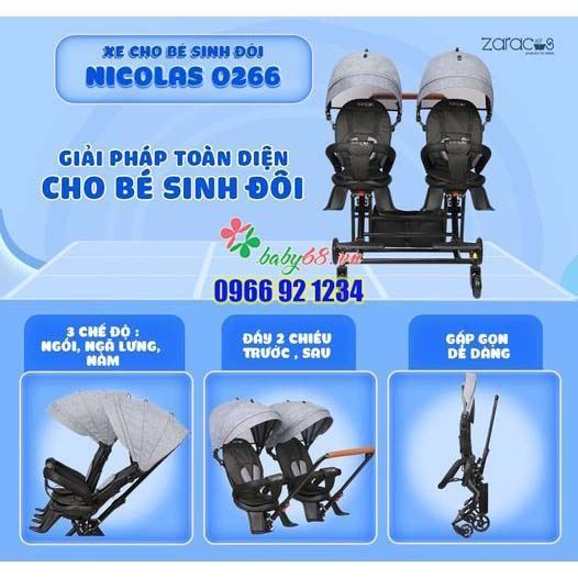 Xe Cho Bé Sinh Đôi Zaracos Nicolas 0266 có nhiều chế độ ngã lưng