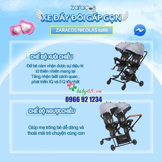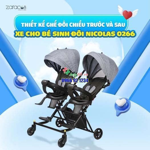 - Xe cho bé sinh đôi Zaracos Nicolas 0266 đẩy được 2 chiều với thiết kế ghế đổi chiều trước và sau.