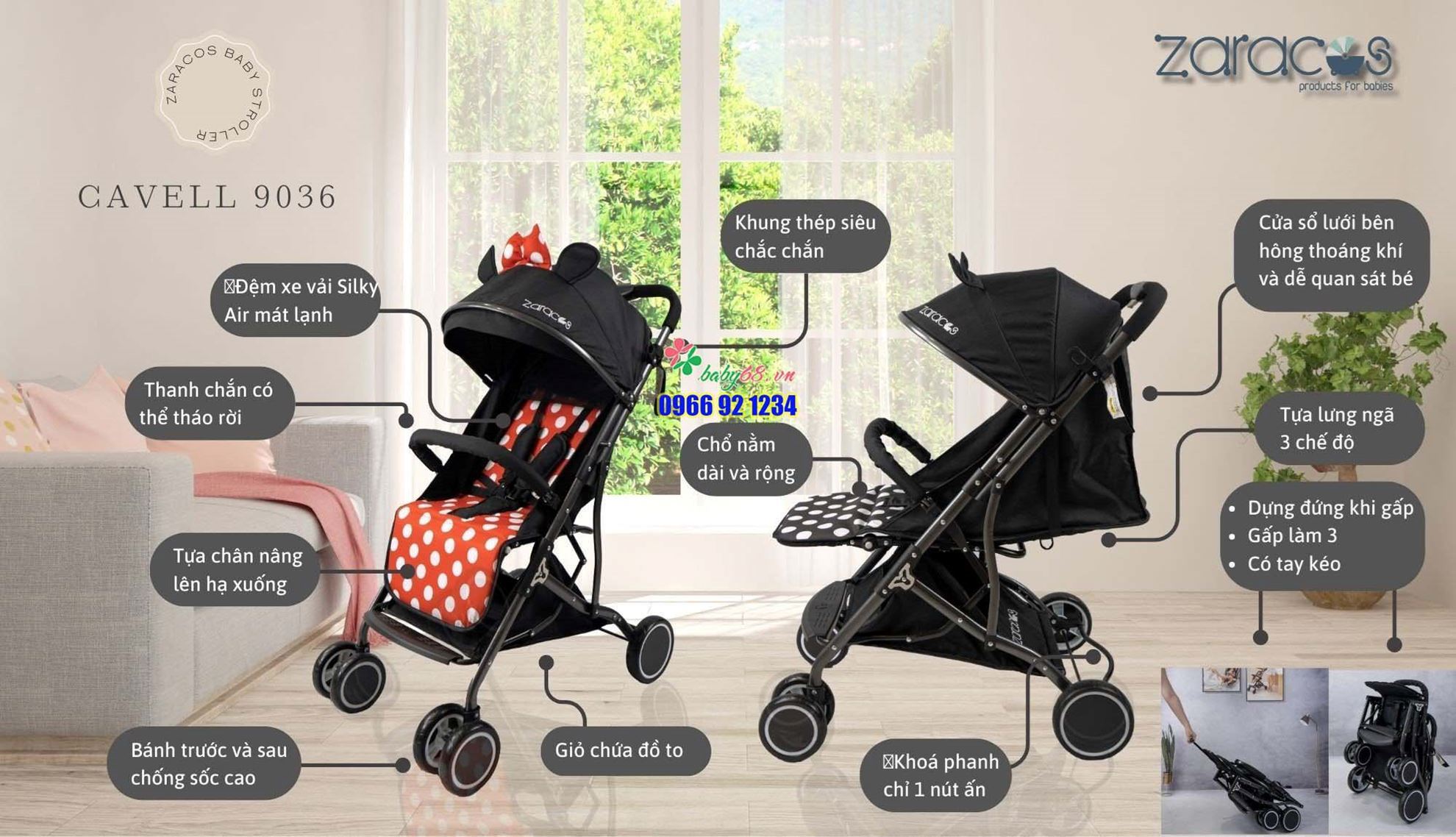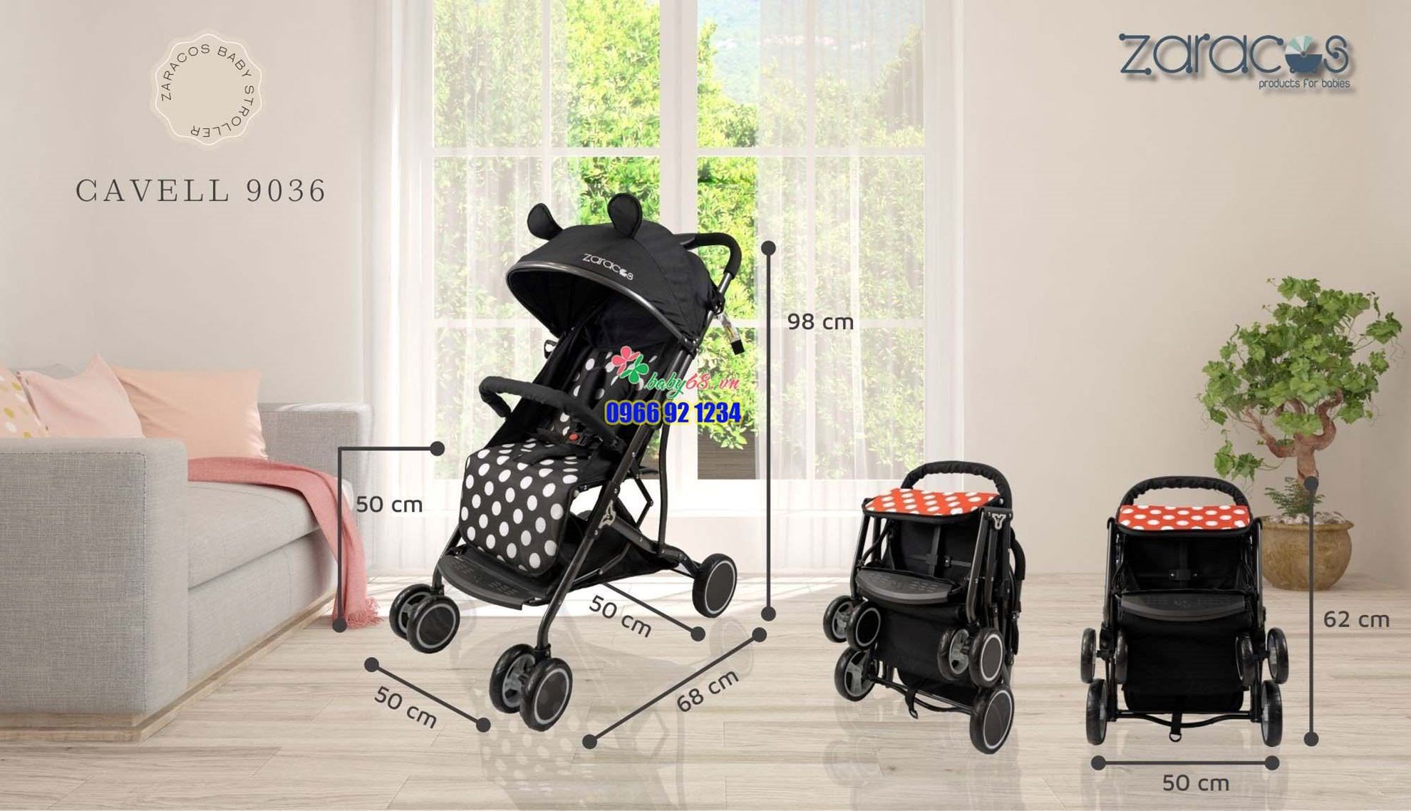 Xe đẩy sơ sinh gấp gọn Zaracos Cavell 9036 cho bé