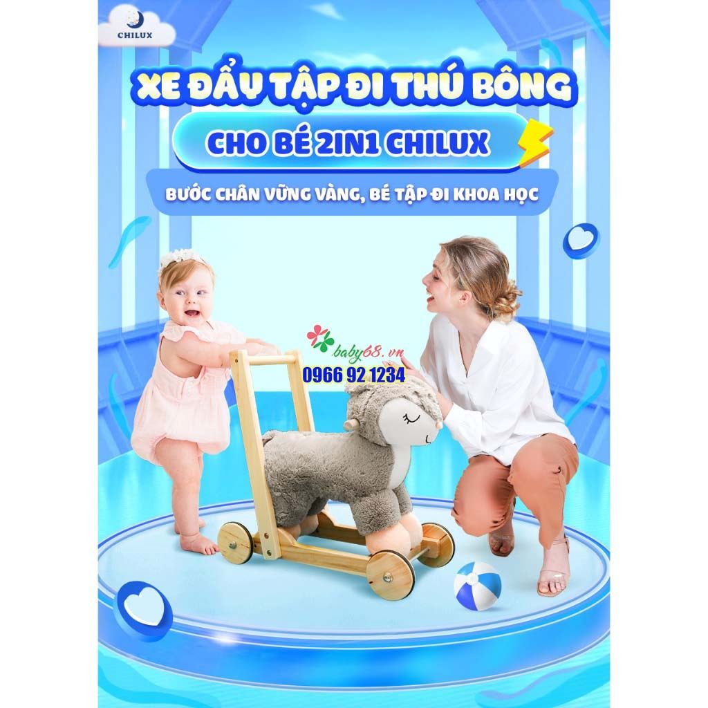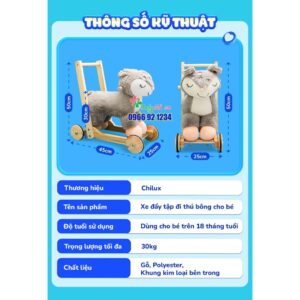 Xe đẩy tập đi thú bông cho bé 2IN1 CHILUX Ngựa Sóc – Xe gỗ tập đi cho bé, xe thú tập đi