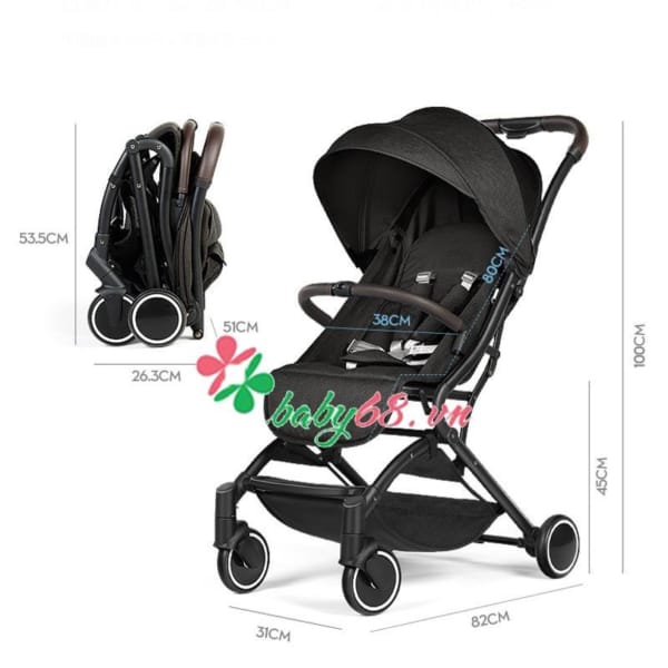 - Chiếc xe có thể gấp gọn chỉ bằng 1 nút bấm vô cùng nhanh chóng. Sau khi kích thước gập gọn chỉ bằng mập gọn, kích thước xe chỉ bằng một chiếc vali nhỏ, mẹ có thể khoác lên vai, xách tay và cho vào cốp ô tô dễ dàng trong các chuyến du lịch của gia đình.