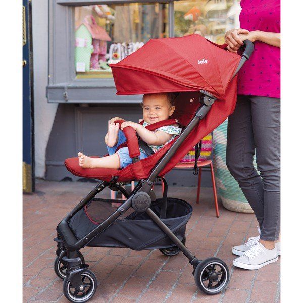 Điểm đặc biệt của Joie Pact đó là hệ thống giảm xóc được trang bị trên mỗi bánh xe giúp những chuyến đi êm ái và không làm ảnh hưởng đến giấc ngủ của bé.