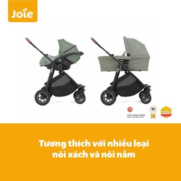 Tương thích với các nôi xách của Joie hoặc các nôi xách khác sử dụng hệ thống tiếp hợp Maxi-Cosi®. Kết nối nhanh chóng với nôi nằm Ramble™ XL hoặc ghế ô tô dành cho trẻ sơ sinh Gemm™ và i-Gemm™ chỉ với một thao tác.