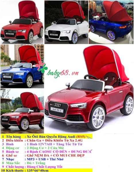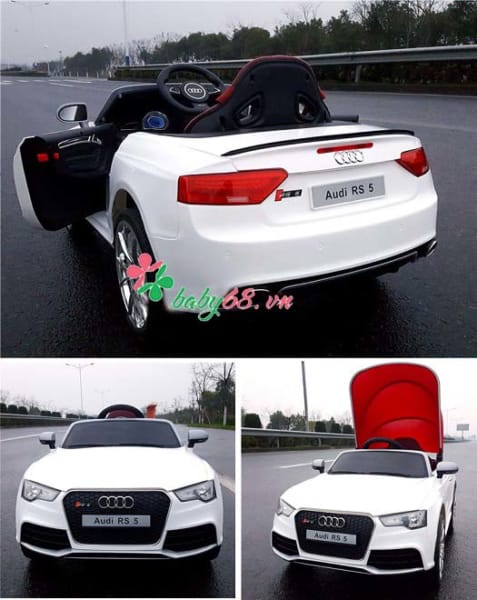 Lấy mẫu từ chiếc xe Audi của người lớn, với thiết kế hiện đại, gọn gàng mà sang trọng ô tô điện trẻ em RS 5 là sự lựa chọn hàng đầu dành cho bé nhà bạn. Dòng xe này với nhiều tính năng ưu việt và sự nổi bật về màu sắc sẽ mang đến cho bạn và bé có những phút giây vui chơi tuyệt vời bên nhau. Vỏ xe được làm từ nhựa cứng đạt tiêu chuẩn Châu Âu tạo độ chắc chắn cho bé khi ngồi.