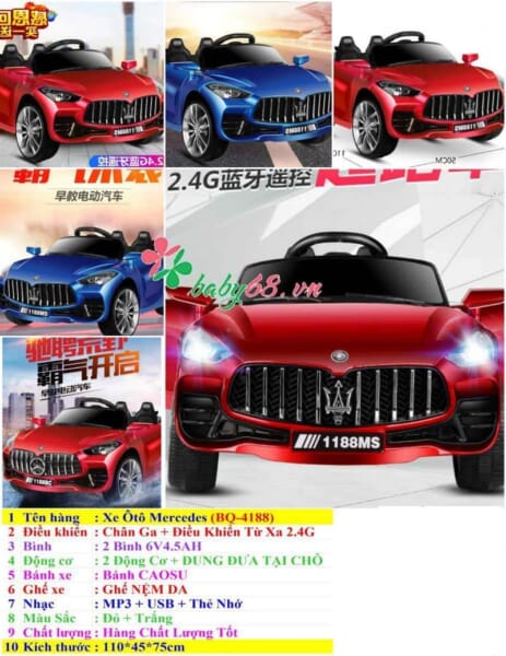 Xe ô tô điện trẻ em BQ-4188 là mẫu xe điện mới nhât hiện nay với thiết kế dáng thể thao cực đẹp, khung thép chắc chắn kèm lớp sơn tĩnh điện cao cấp bóng đẹp.