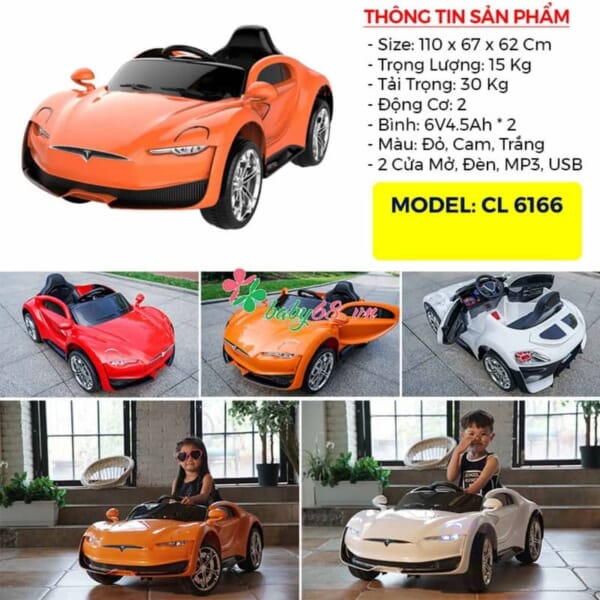 Mẫu ô tô điện trẻ em CL-6166 với thiết kế dựa trên phiên bản xe thật của dòng siêu xe điện Tesla vô cùng sang trọng và lịch lãm chắc chắn các bé đều thích khi được sở hữu. Bên cạnh thiết kế đẹp mắt thì mẫu xe này còn ghi điểm với những tính năng độc đáo: được trang bị 2 động cơ mạnh mẽ, dàn đèn đẹp, âm nhạc ấn tượng, 2 cửa mở thời thượng.