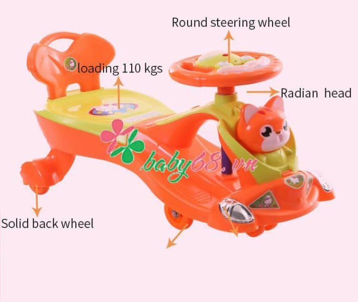 – Xe lắc Có nhạc hay, có đèn đẹp, có lưng cao chỗ ngồi rộng rãi. Chịu được tải trọng 110kg. Chống trượt chân.