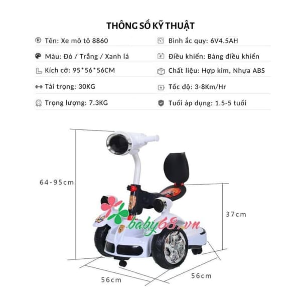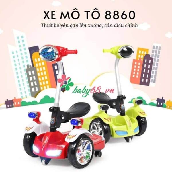 Xe cân bằng điện trẻ em 8860 (đa năng), là dòng xe điện trẻ em có thể ngồi như xe ô tô điện trẻ em (có đai an toàn cho bé). Đồng thời xe điện trẻ em 8860 cũng có thể đứng và đi lại thuận tiện như dòng xe điện cân bằng của người lớn. Dòng xe này an toàn hơn nhiều so với xe điện cân bằng, xe 8860 được thiết kế gồm 2 bánh lớn và 3 bánh nhỏ để bé được an toàn.