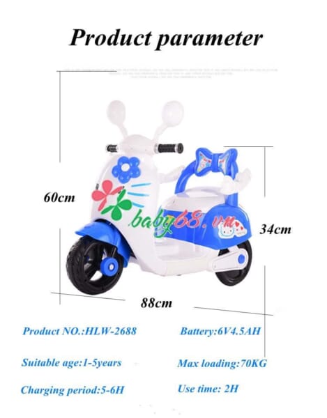 Khoác lên mình là một hình ảnh chú mèo Kitty đáng yêu. Xe máy điện HLW 2688 dành cho trẻ em đã chinh phục được trái tim của các nàng công chúa. Kiểu dáng xe được thiết kế mang phong cách nhẹ nhàng dễ thương. Điều này sẽ toát lên được vẻ đẹp nữ tính, dịu dàng cho các thiên thần nhỏ.