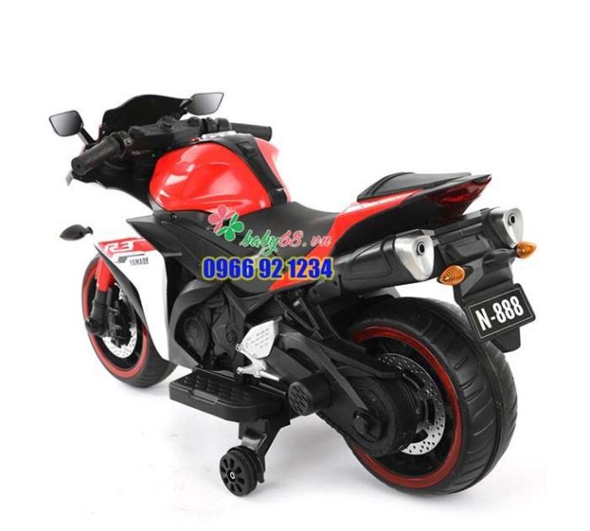 Xe máy chạy điện trẻ em N888 xuất hiện chắc chắn sẽ được đông đảo các bé trai, bé gái chào đón và yêu thích, đây là mẫu xe thể thao mô phỏng dòng xe phân khối lớn YAMAHA R3 cực chất với thiết kế to, khỏe, chắc chắn, cùng với 2 gam màu nổi bật là màu đỏ và xanh dương kết hợp với màu trắng tinh tế.