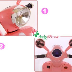 Xe máy điện trẻ em 3279 (NLD3288) kiểu dáng xe Vespa cực đẹp, sang trọng và cá tính, thiết kế đẹp với hình ảnh những chú cún dễ thương.
