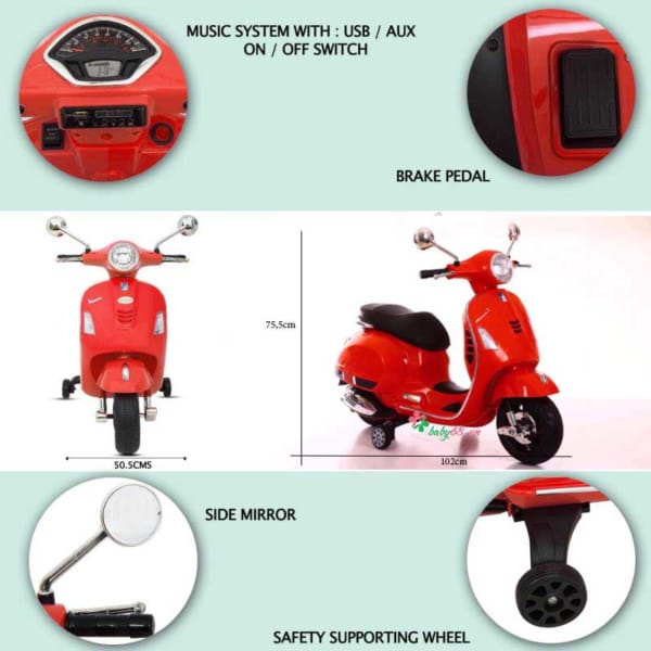 Xe máy điện trẻ em Vespa Q618 màu đỏ