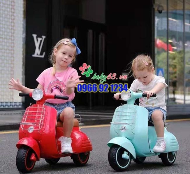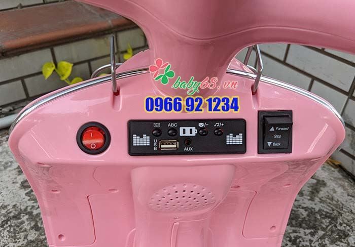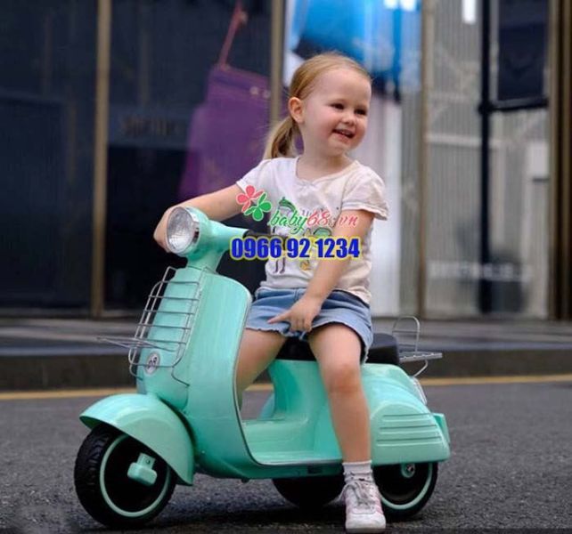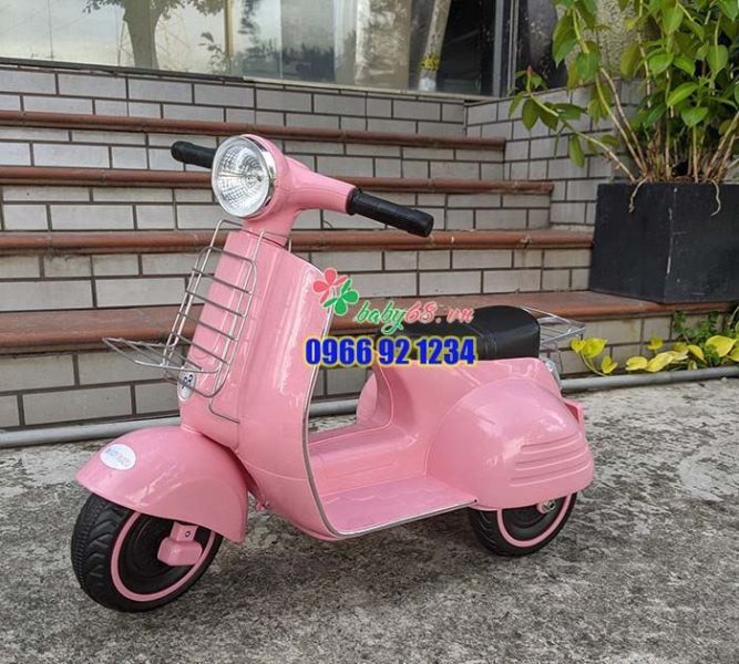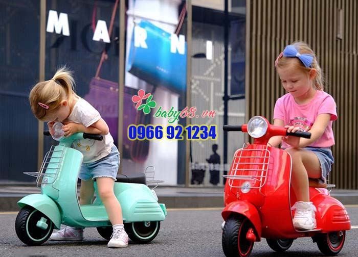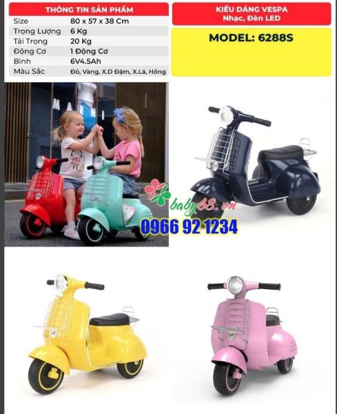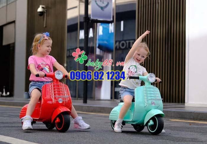 + Vespa 6288S thiết kế 2 bánh chính đường kính lớn, tạo độ chắc chắn cho xe, kết hợp 2 bánh lăn nhỏ ở giữa giúp bé dễ dàng giữ thăng bằng cho xe.
