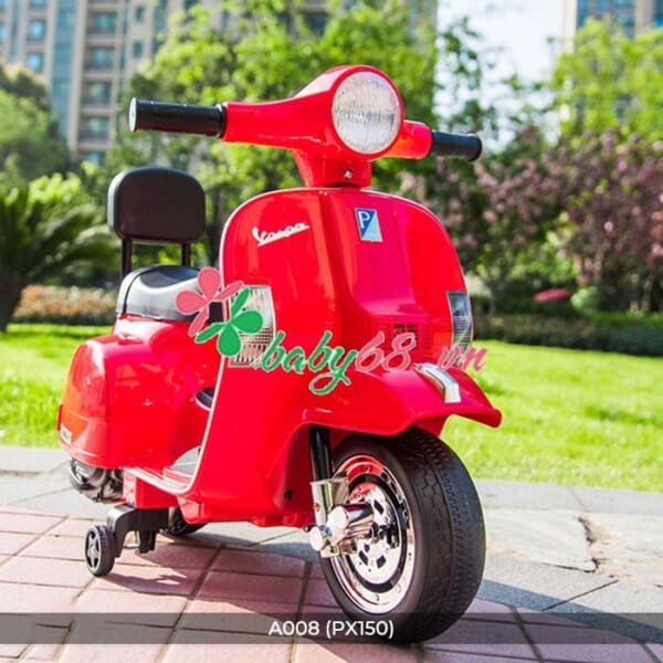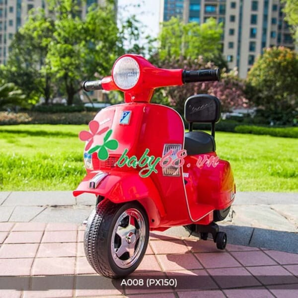 Bé là người yêu thích dòng xe Vespa và đam mê tốc độ, Xe máy điện Vespa A008 là mẫu xe thu nhỏ được thiết kế và lấy cảm hứng theo dòng xe Vespa PX150 thuở xưa, với thiết kế bám sát theo từng chi tiết với mẫu xe thật, Vespa A008 sẽ trở thành món đồ chơi yêu thích nhất của bé. Xe có 4 phiên bản màu sắc cho bé tha hồ lựa chọn: đỏ, trắng, xanh dương, hồng.