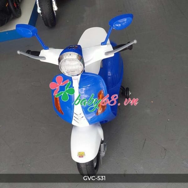 Xe máy điện trẻ em GVC-531 là mẫu xe Vespa mới trên thị trường, đây là hàng xuất sang Ý nên được thiết kế theo đúng tiêu chuẩn châu Âu. Phiên bản với thiết kế nhỏ gọn, mô phỏng giống như với sản phẩm xe máy Vespa dành cho người lớn, với thiết kế đẹp mắt và sang trọng sẽ giúp bé thêm phần sành điệu khi chơi xe. Series GVC-531 được mix màu khá ấn tượng, nhiều màu sắc dễ thương dành cho bé.