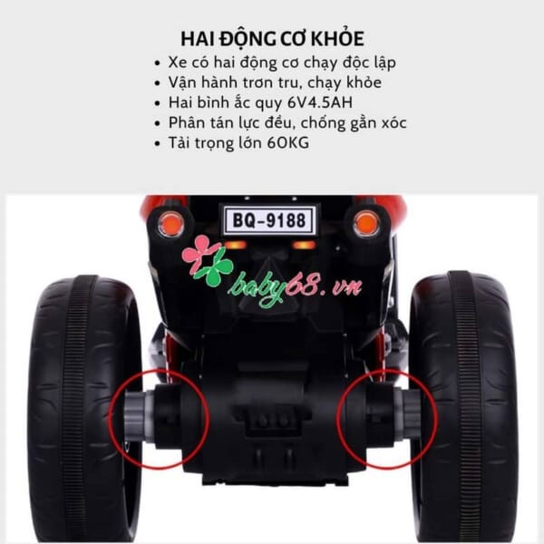 Xe moto điện thể thao trẻ em BQ 9188 là mẫu xe điệ nthể thao cực chất dành cho các bé giá rẻ được ưa chuộng hiện nay. Chiếc xe thiết kế kiểu dáng khỏe khoắn cùng với sự đa dạng về chức năng, chiếc xe giúp các bé dễ dàng vui chơi, thoải mái phiêu theo cá tính và phong cách của mình