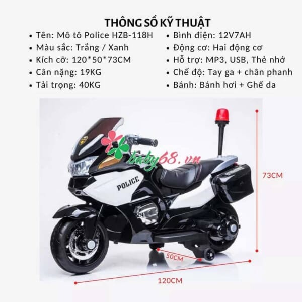 Xe mô tô điện cho bé Police HZB-118.H