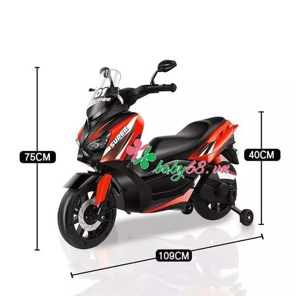 Chiếc mô tô này thực sự là chuyến đi tốt nhất cho bé lái mô tô nhỏ. Chiếc xe này thật tuyệt đẹp 3-8 km/h để giữ an toàn cho đứa con nhỏ của bạn mọi lúc. Chiếc xe máy điện có thể lái bao gồm các tấm đề can thực tế để nâng cao thời gian chơi của tay đua mini của bạn cũng như các hiệu ứng âm thanh và ánh sáng đáng kinh ngạc!