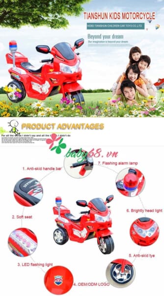 Nhắc đến xe cảnh sát ngoài loại xê ô tô điện không thể bỏ qua loại thứ 2 đó chính là mô tô. Xe mô tô police BQ5188 với kiểu dáng rất ngầu và như dành riêng cho những bé trai cá tính.