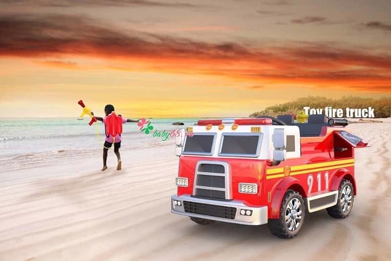 Xe cứu hỏa điện trẻ em LL-911 2 cốp bên hông xe đóng mở được