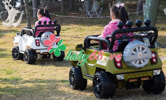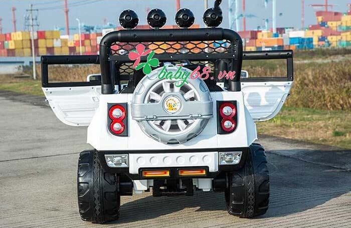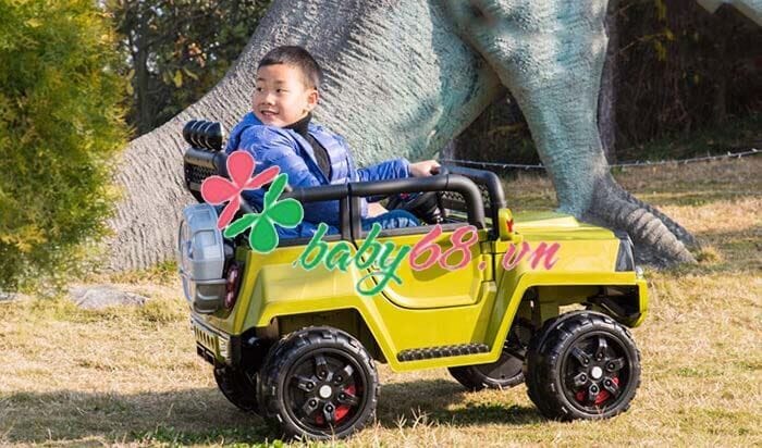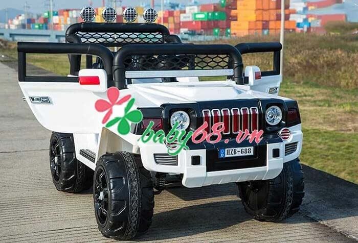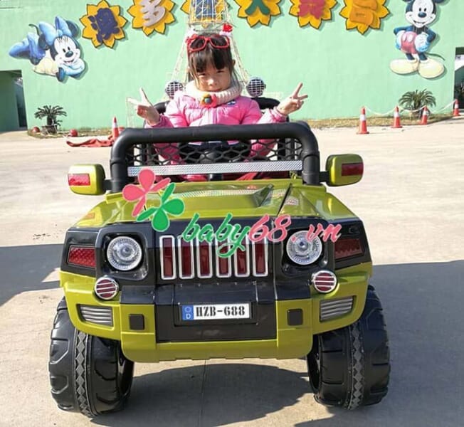 Kiểu dáng xe Jeep quân sự gầm cao khỏe khoắn, 4 bánh xe lớn khá hầm hố, ghế ngồi bằng da êm ái, động cơ mạnh mẽ là những ưu điểm vưới trội mà dòng xe ô tô điện Jeep HZB-688 này mang đến. Với nét cá tính và sự mạnh mẽ của xe mang lại hứa hẹn sẽ mang đến cho bé những trải nghiệm vui vẻ.