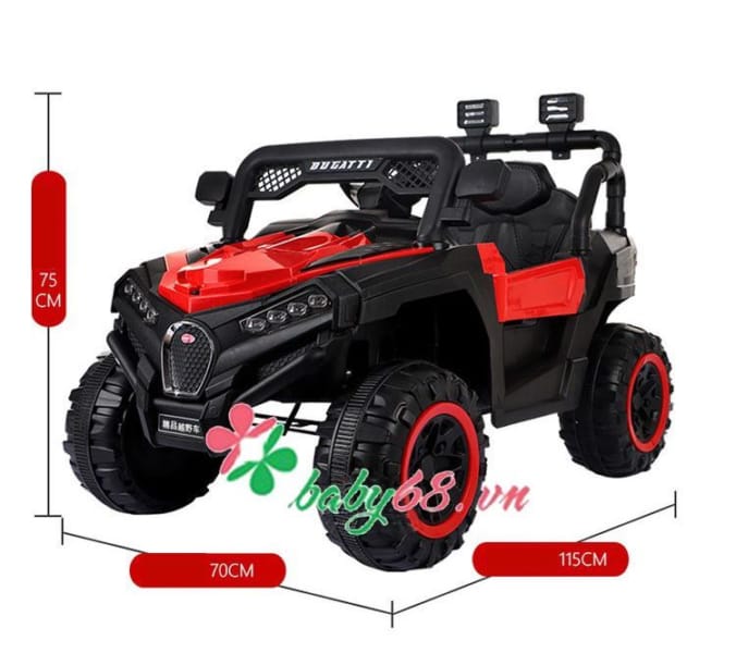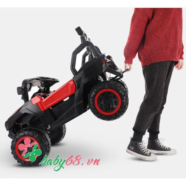 - Thiết kế xe khá “hầm hố” với kiểu dáng xe địa hình cực ngầu. Hệ thống đèn led ở đầu xe và đuôi xe cực ấn tượng. Bánh xe bằng nhựa cao cấp có độ ma sát cao giữ an toàn cho bé khi vui chơi. Gầm xe cao, trên các bánh xe đều có bộ phận giảm xóc thông minh cho bé thỏa sức vượt địa hình.