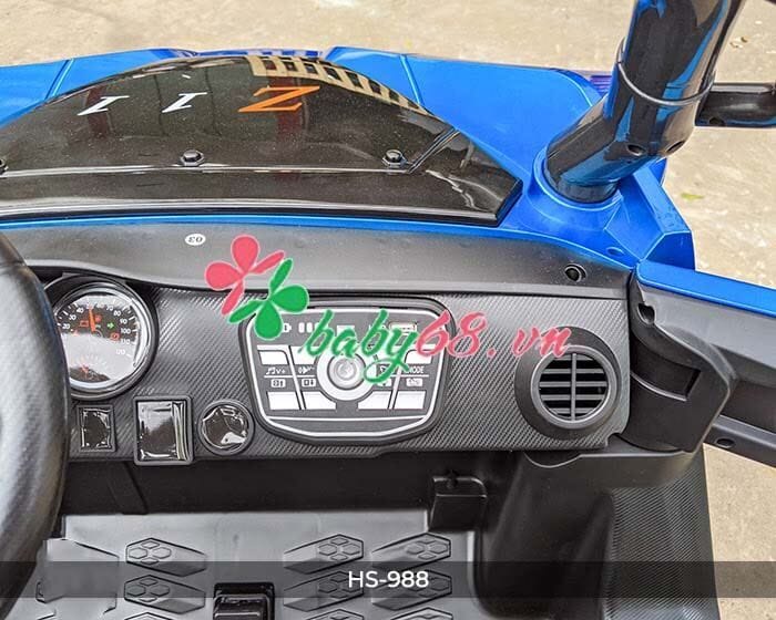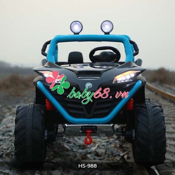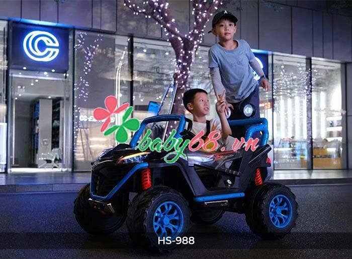 Ô tô điện trẻ em HS-988 phiên bản địa hình cực ngầu, thiết kế chỗ ngồi rộng rãi, có đủ chỗ cho 2 bé cùng ngồi. Xe ghi điểm với kiểu dáng hầm hố nhưng không kém phần sang trọng đặc trưng của dòng Jeep vốn có: gầm xe cao, bánh to nên chạy trơn tru mọi địa hình gồ ghề hay bằng phẳng. Ngoài xe còn tích hợp nhiều tính năng hiện đại tiên tiến hiện nay, giúp mang lại cho bé nhiều trải nghiệm thú vị.