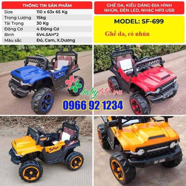 Một chiếc xe ô tô địa hình có thể đáp ứng được nhu cầu vui chơi lành mạnh, an toàn, rèn luyện thể chất ngay từ nhỏ, mà giá thành lại vô cùng rẻ, chiếc SF-699 này sẽ là sự lựa chọn vô cùng thích hợp dành cho bé mà bố mẹ dễ dàng có thể mua được.