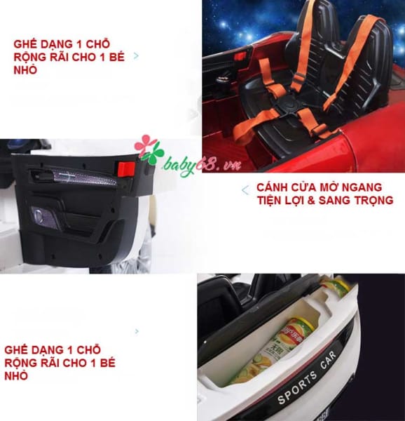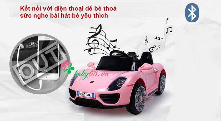 Xe ô tô điện trẻ em BBH-7188 mang dáng xe Posche sang trọng hiện đại và có phần hơi nữ tính nên đây sẽ là sự lựa chọn hoàn hảo cho những gia đình muốn mua xe hơi cho bé gái. Mặc dù thiết kế nhỏ gọn nhưng xe BBH-7188 lại được làm từ nhựa cao cấp + hệ thống khung xe chắc chắn, cùng hệ thống 2 cánh cửa mở ngang và hệ thống dây an toàn chắc chắn nên bố mẹ hoàn toàn yên tâm khi cho bé vui chơi trên xe nhé