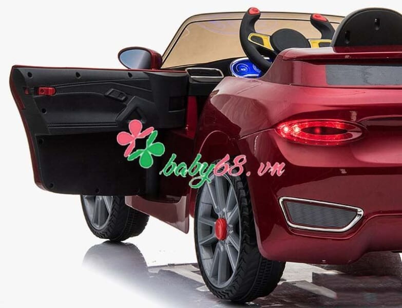 Bánh cao su. Ghế da mềm êm. Siêu xe sang trọng. Cửa mở. Đung đưa tại chỗ. Đầy đủ các bộ phận: còi, đèn, nhạc, volume, số tiến/lùi, điều khiển từ xa, dây an toàn, cổng usb/thẻ nhớ/mp3 để bé thoả sức nghe những bài hát bé yêu thích