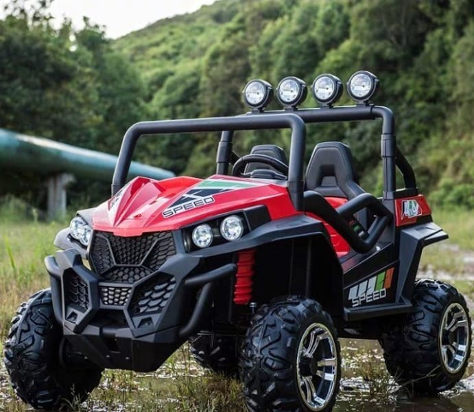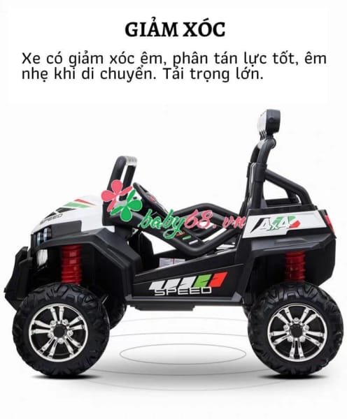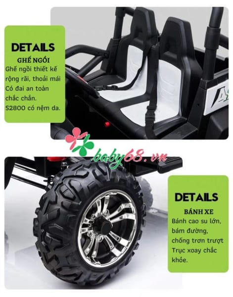 Xe ô tô điện trẻ em 2 chỗ ngồi Jeep S2799 – S2800 được lấy cảm hứng thiết kế theo mẫu xe Jeep hầm hố ngoài đời thực. Khung xe chắc chắn, khung gầm cao hầm hố, 4 bánh to khỏe thách thức địa hình kèm lớp sơn bóng đẹp
