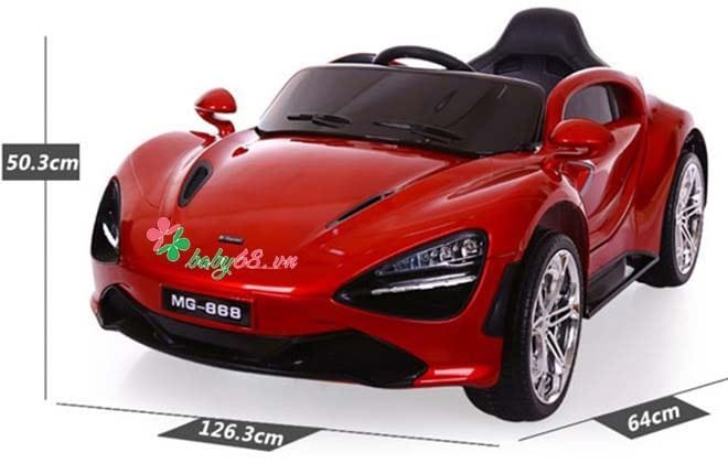Xe điện trẻ em MG-868 thiết kế theo kiểu dáng siêu xe cực chất với khung gầm chắc chắn, lớp vỏ nhựa cao cấp đạt chuẩn Châu Âu.