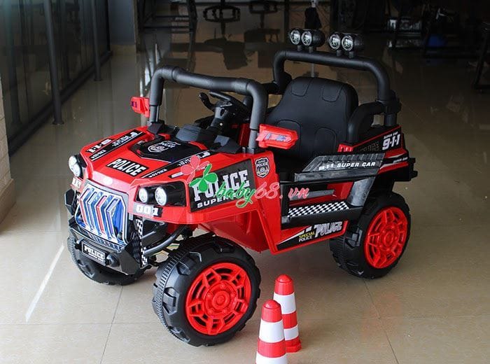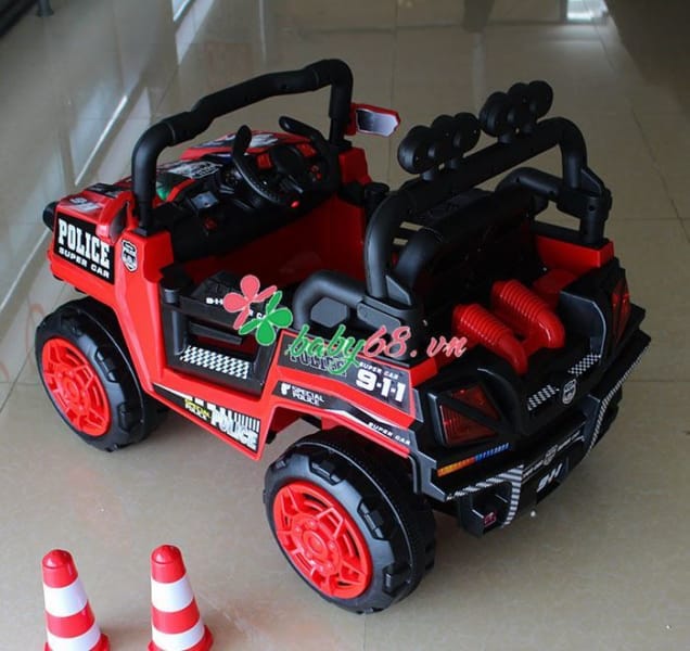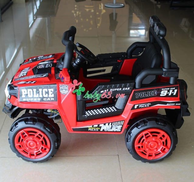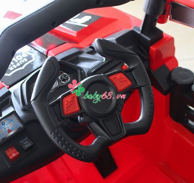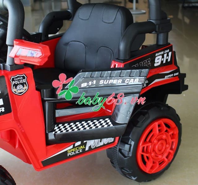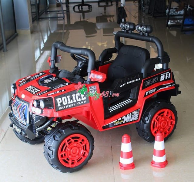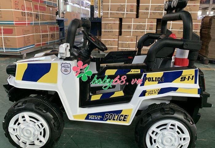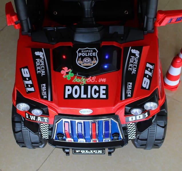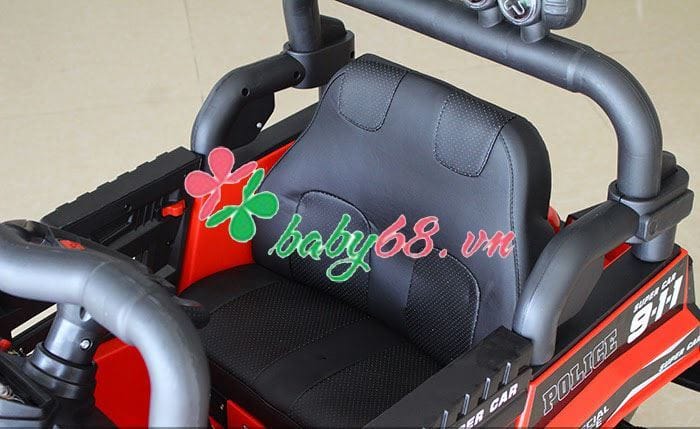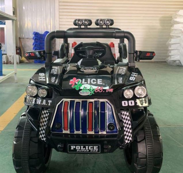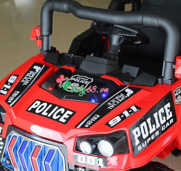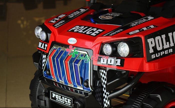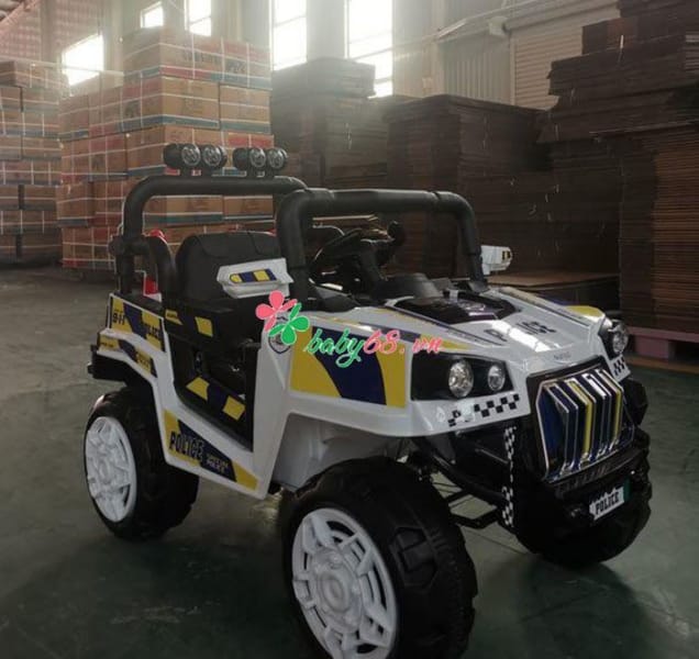 + Khung xe được thiết kế ứng cáp, bên ngoài được làm từ nhựa cao cấp, bên trong xe có bộ khung kim loại, rất độ an toàn cho các bé qua mọi nẻo đường với dáng địa hình hết hợp với dòng xe cảnh sát này.