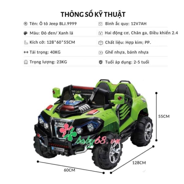 Xe ô tô Jeep điện cho bé 2 chỗ ngồi BLJ -9999