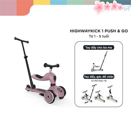 Xe scooter trẻ em Scoot and Ride Highwaykick 1 Push and Go – Tích hợp xe chòi chân cho bé có tay bám cho bố mẹ