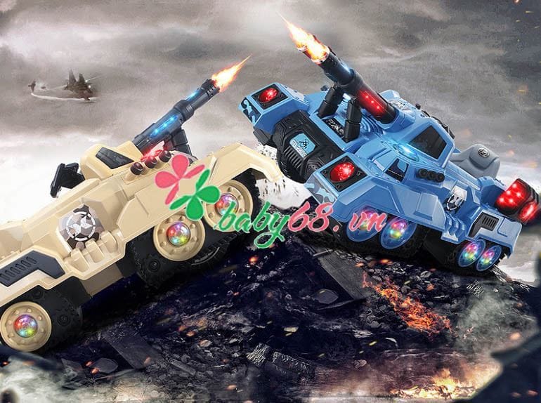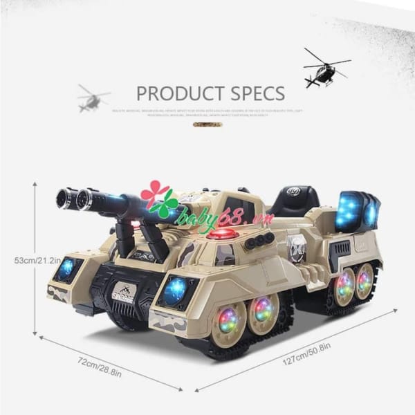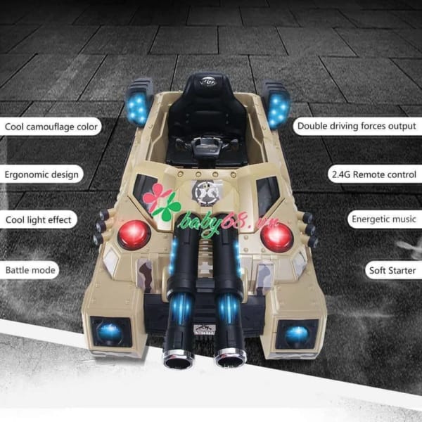 Xe ô tô thiết kế kiểu xe tăng mang phong cách mới lạ độc đáo, mang đến cho bé sự tò mò khám phá, học hỏi, khơi dậy cho bé niềm đam mê với quân đội ngay từ nhỏ. Xe được trang bị hệ thống đèn led siêu sáng, âm thanh sinh động thích thú cho bé.