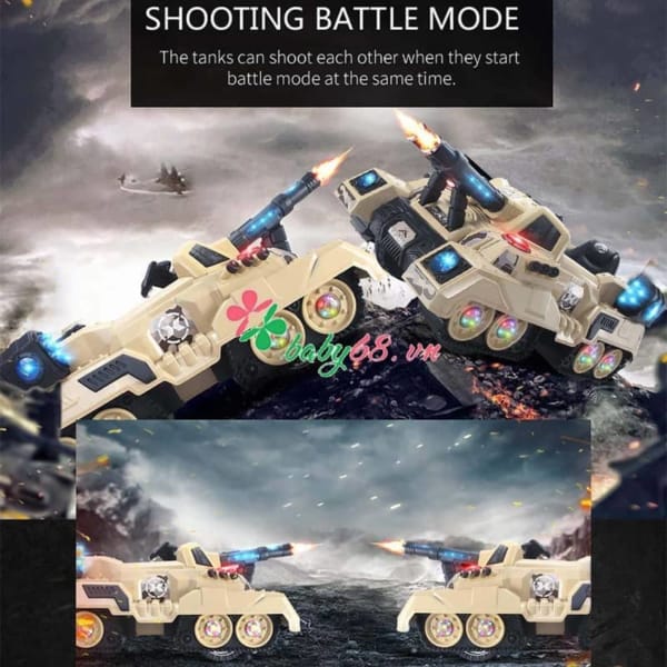 Xe được trang bị 2 động cơ lớn, sử dụng ắc quy 12v7 nên cho tốc độ từ 3 – 5km/h. Hệ thống mô phỏng bánh xích có đèn LED đẹp.