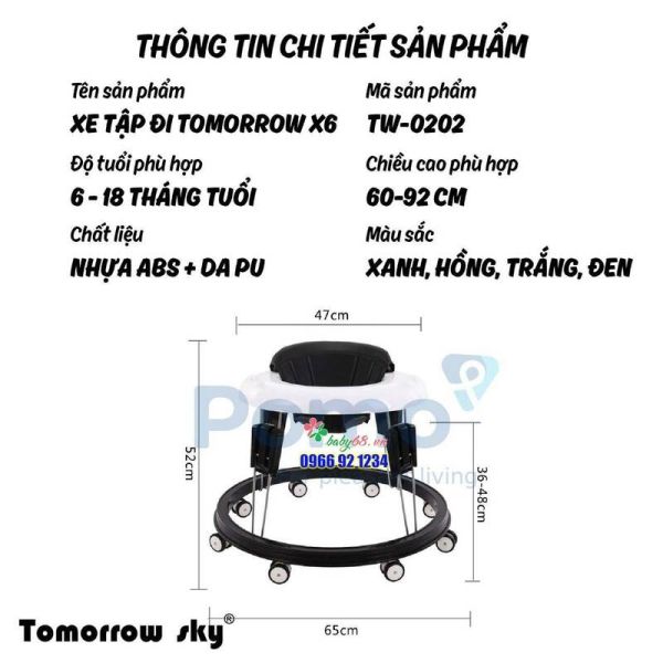 CHI TIẾT SẢN PHẨM XE TẬP ĐI TOMORROW X6