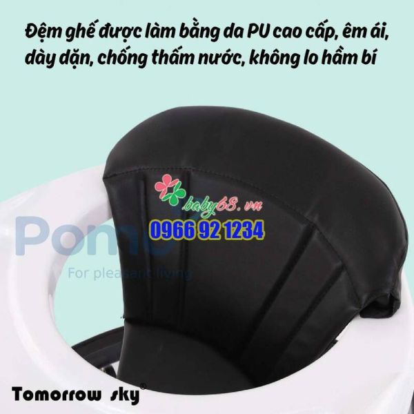– Ghế ngồi được bọc đệm da PU siêu mềm mại, êm ái, có thể dễ dàng vệ sinh sạch sẽ mỗi lần bé sử dụng xong.