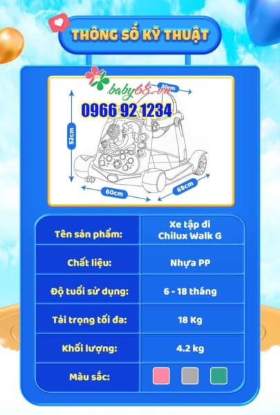 Xe tập đi Chilux Walk G, thiết kế không góc cạnh, gấp gọn dễ dàng, đạt chuẩn châu âu