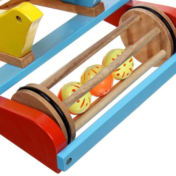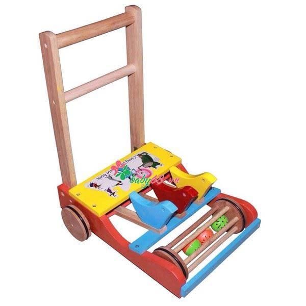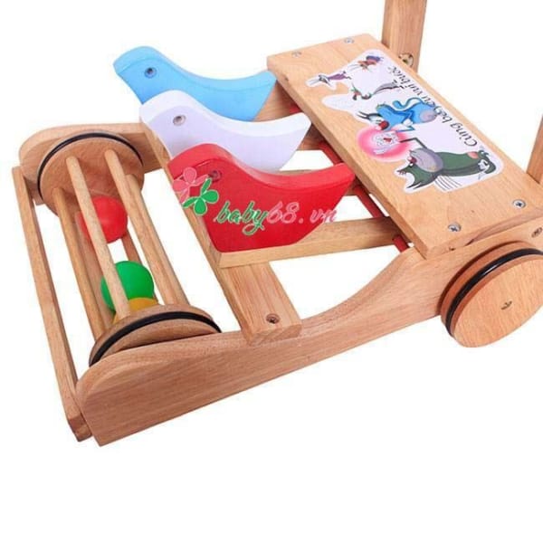 – Bánh xe gỗ được bọc một lốp cao su bên ngoài tạo độ bám, giúp an toàn nhất cho bé