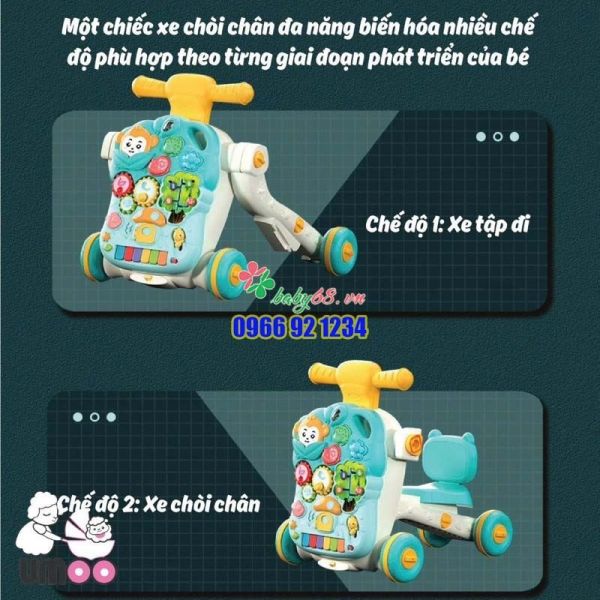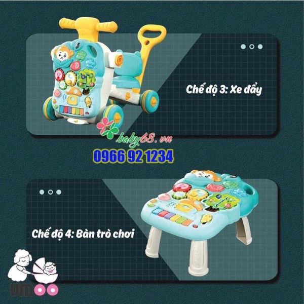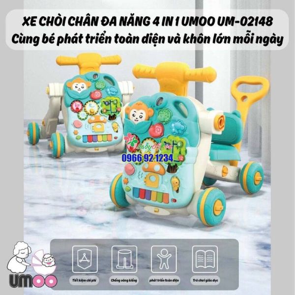 Xe tập đi đa năng cho bé 4IN1 UMOO UM-02148, dụng cụ tập đi chống lật chống trượt, xe tập đi chống vòng kiềng trẻ em