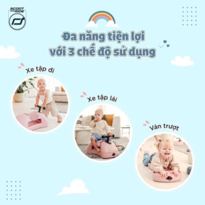 • Đa năng và tiện lợi với 3 chế độ sử dụng tích hợp: Xe tập đi, xe tập lái và ván trượt. Dễ dàng chuyển đổi ba chế độ sử dụng chỉ trong vài giây mà không cần dụng cụ hỗ trợ.