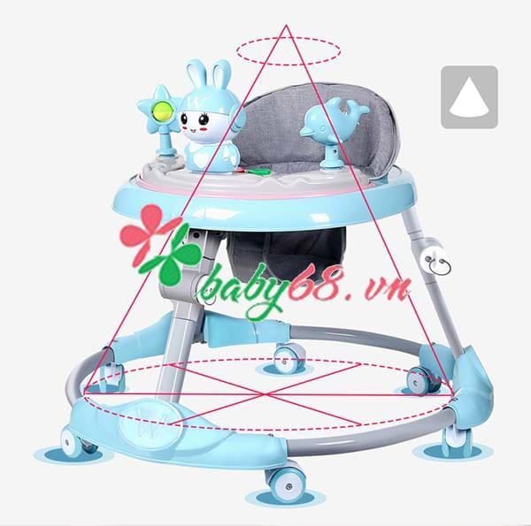 – Xe tập đi dành cho bé được thiết kế hình hình tròn độc đáo, làm cho khung xe rộng, khi bé tập đi không bị va gót chân vào khung xe, rất an toàn cho trẻ.